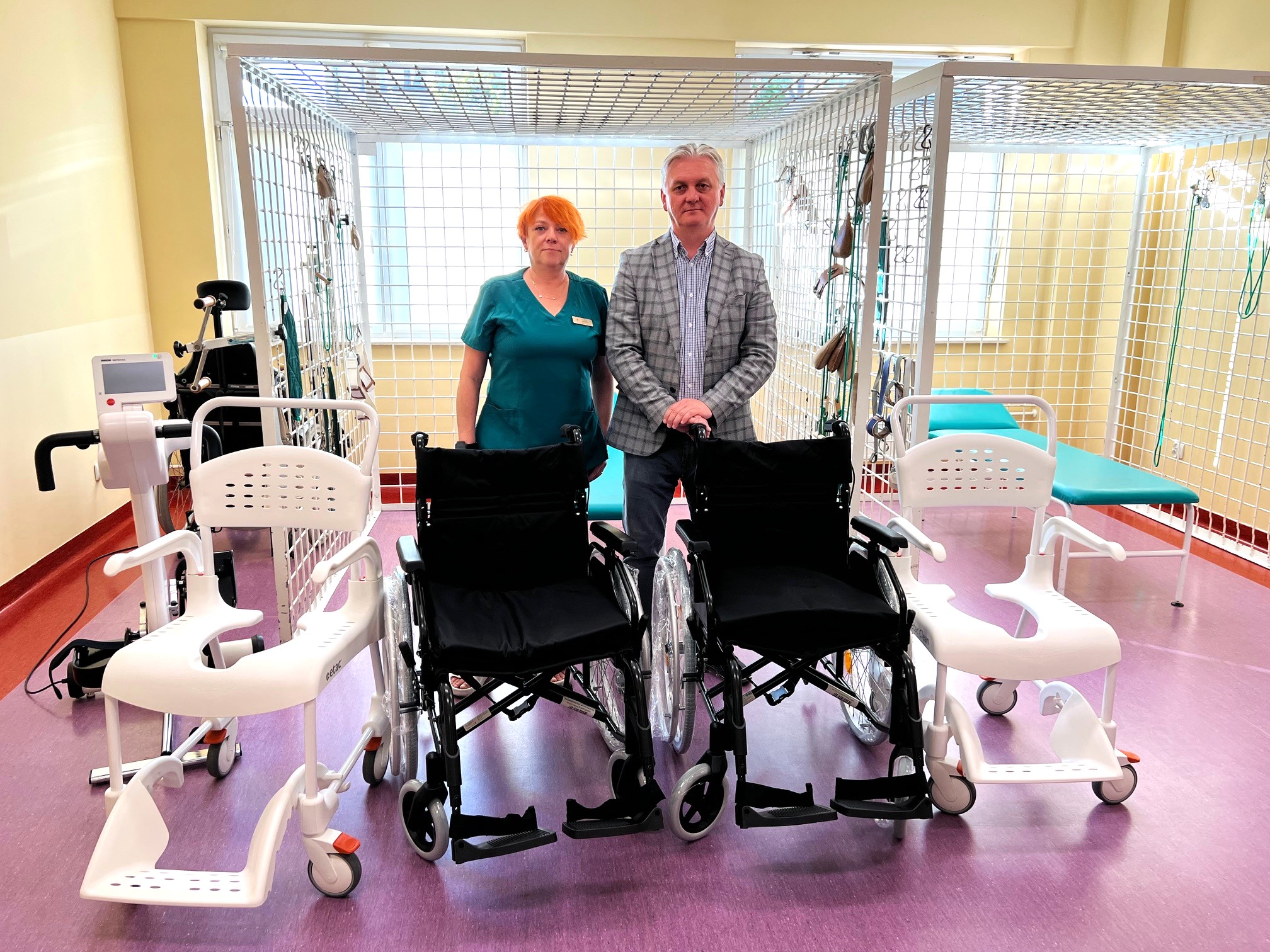 Łącznie 4 wózki inwalidzkie i toaletowe trafiły na Oddział Rehabilitacji Neurologicznej który działa w strukturach Świętokrzyskiego Centrum Neurologii Wojewódzkiego Szpitala Zespolonego w Kielcach. Na tym, zapewniającym 24-godzinna opiekę lekarską oddziale, przebywają pacjenci po udarach, często przez długie tygodnie. Podczas oficjalnego przekazania sprzętu, kierownik oddziału – Justyna Sieczka podkreślała, że urządzenia te są im niezwykle potrzebne w tym procesie.